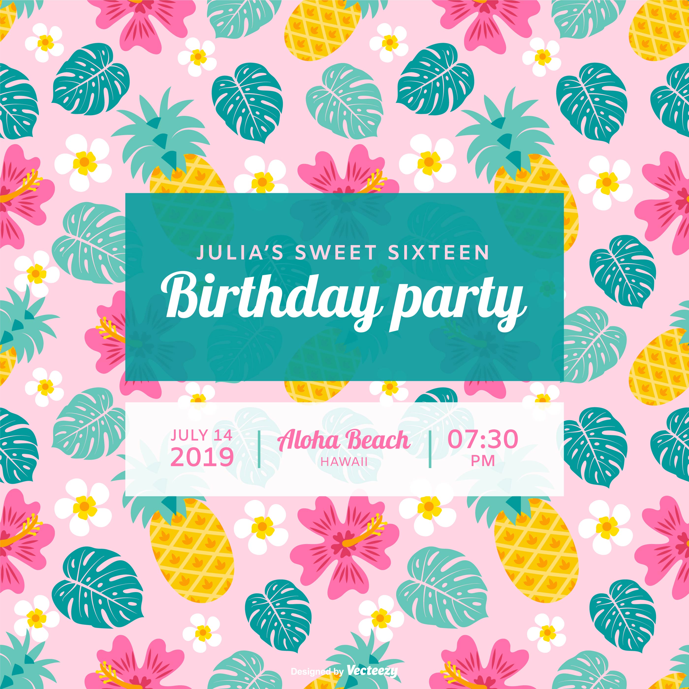 Polynesische Geburtstagsfeier Vektor Einladung Download