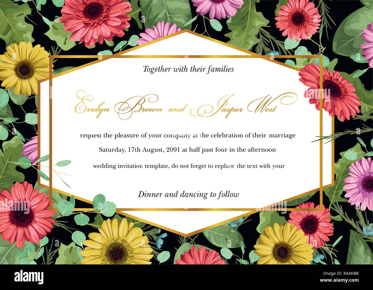Vorlage Vektor Aquarell Blumen Einladung Aus Gerbera Und Blatter