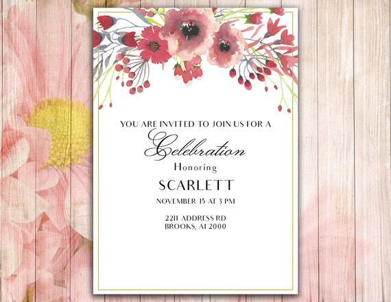 Schone Blumen Einladung Psd Vorlage Baby Dusche Einladung Etsy
