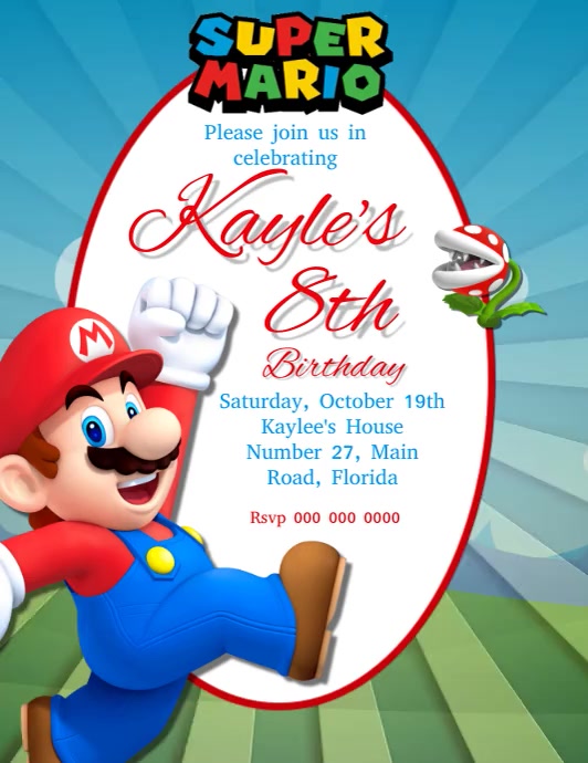 Mario Birthday Party Einladung Vorlage Vorlage Postermywall